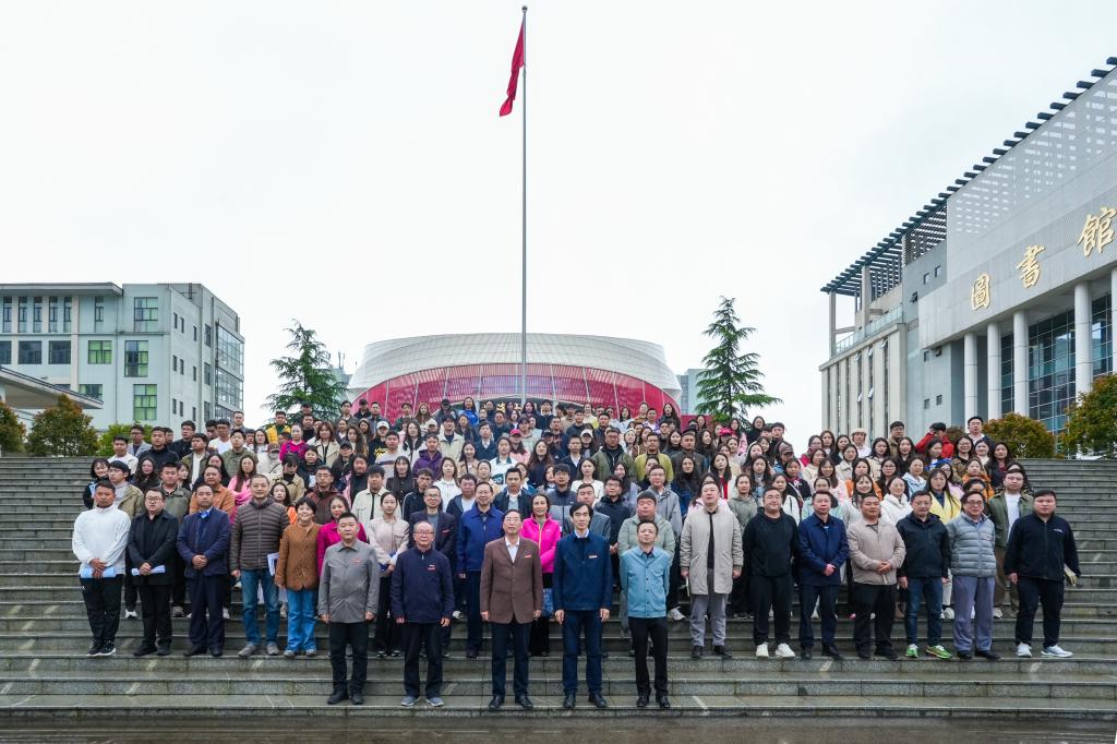 校党委副书记、校长李建萍,党委委员、常务副校长勒系琳,党委委员、副校长李新发,党委副书记、纪委书记聂立新,党委委员、副校长宋新乐,党委委员、财务总监曾隆槐,党委委员、副校长杨金钱;校属各单位、教学院(部)全体教职工,各职能部门科级以上干部参会。
