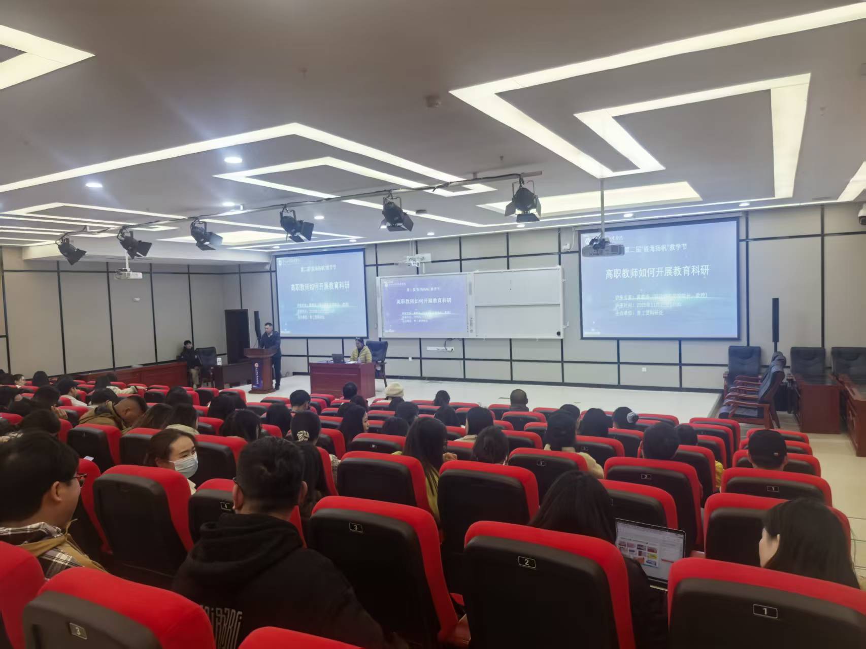 本届“辰海扬帆”教学节以“抓规范、强内涵、提质量、创特色”为目标,此次讲座紧扣这一核心,精准对接高职教师科研痛点。黄教珍教授立足于高职教育类型定位,围绕“工匠精神、匠心、匠魂、匠技、匠能、黔匠、红匠”主题,结合自己丰富的科研实践经验,拆解教育科研的关键路径。讲授内容涵盖从教学实践中提炼科研选题、贴合区域发展设计研究方向、破解科研与教学脱节难题等实用内容,为教师提供可借鉴、可操作的科研工作指南。