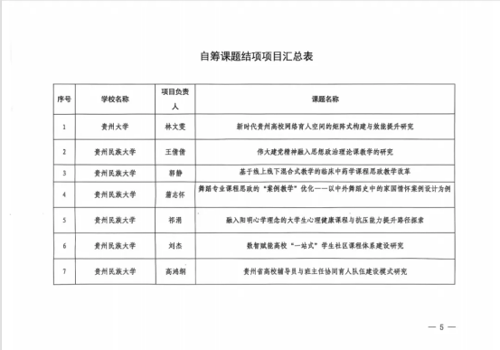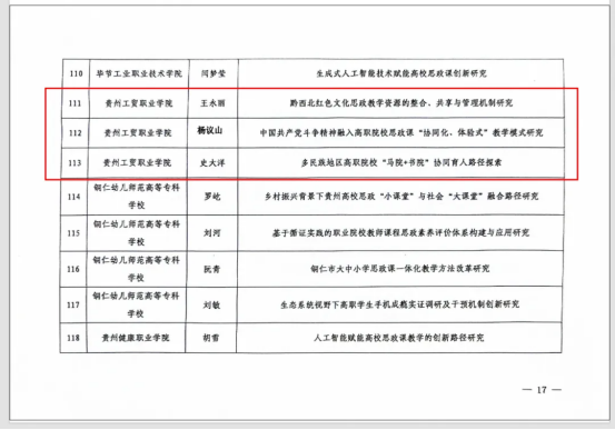 beat365中文官方网站在贵州省教育厅关于开展“2025年党的创新理论研究阐释和思政课建设”课题申报中,获立项3项。近日省教育厅组织有关专家对已立项课题开展结项工作。经专家审核,187个课题中178个结项。beat365中文官方网站获立项的3项课题通过结项。
