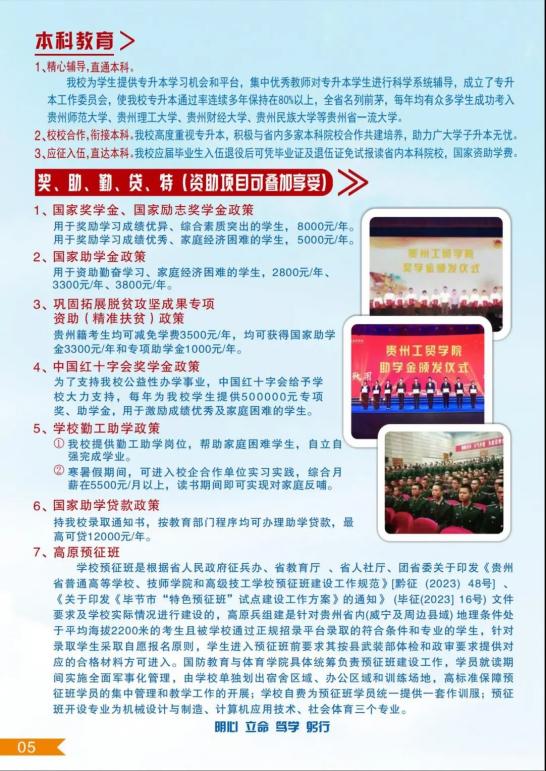 学校坚持立足地方、服务地方,注重产教融合、工学结合,实施引企入校、开放办学,赋能产业升级、乡村振兴。先后与字节跳动、杭州聚学电子商务公司、一道新能源科技股份有限公司、威宁金元智慧能源有限公司、用友集团、湖南工控帮网络科技有限公司、一品鲜食品有限公司、乌撒阳光文化产业开发有限公司等省内外大中型企业和事业单位开展校企深度合作,组建了乡村振兴产业学院、新能源产业学院,实行校企联合招生、开展委托培养、订单培养模式。探索实施“校企合作、工学交替、课赛结合、课证融合”的技术技能型人才培养新模式,聚焦“岗、课、赛、证”综合育人。