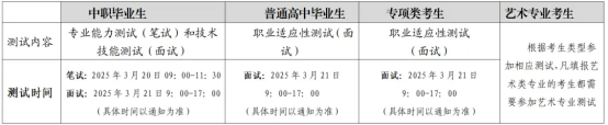 3.专项类考生须参加我校组织的与报考专业相关的职业技能适应性测试。