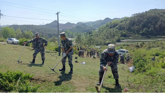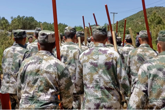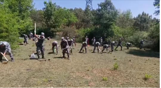 预征班学员们在往植树目的地前进,一个绿色的梦想再次酝酿,一个绿色的希望再次启航。