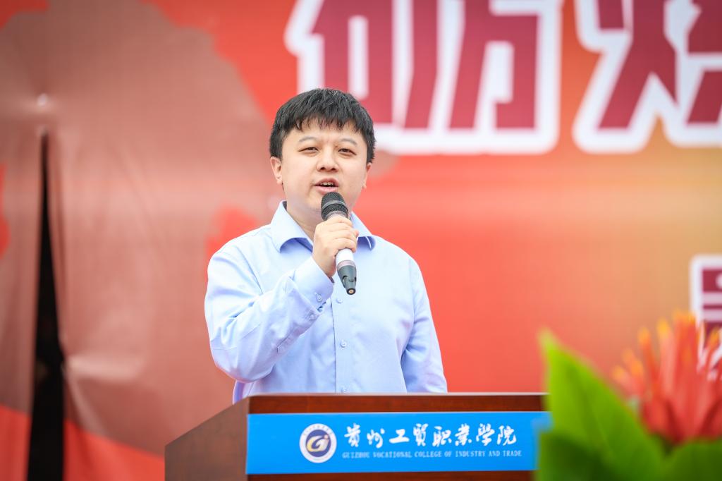 来自现代商务学院(乡村振兴产业学院)的教师代表夏婷从新生的学姐、学工科教师、全体同学的老师三个身份与2024级的新生们交流。夏婷表示,学校基础设施、软件建设越来越好,学校也同省内外大中型企业和事业单位开展校企深度合作;希望新同学能够认真遵守学校的各项规章制度,尊重老师、尊重课堂、尊重教育,积极参与各种教育教学活动,养成良好的学习习惯,为将来的发展打下坚实的基础。她同时祝愿本次军训取得圆满成功!祝愿同学们在军训中收获满满,在学校度过一段精彩而难忘的大学时光!