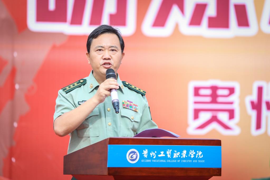 李建萍向全体新生作了题为《以军训之名,扬青春之帆》的讲话。李建萍代表学校向2024级新生表示热烈欢迎,向军训承训单位威宁县人民武装部表示衷心的感谢。