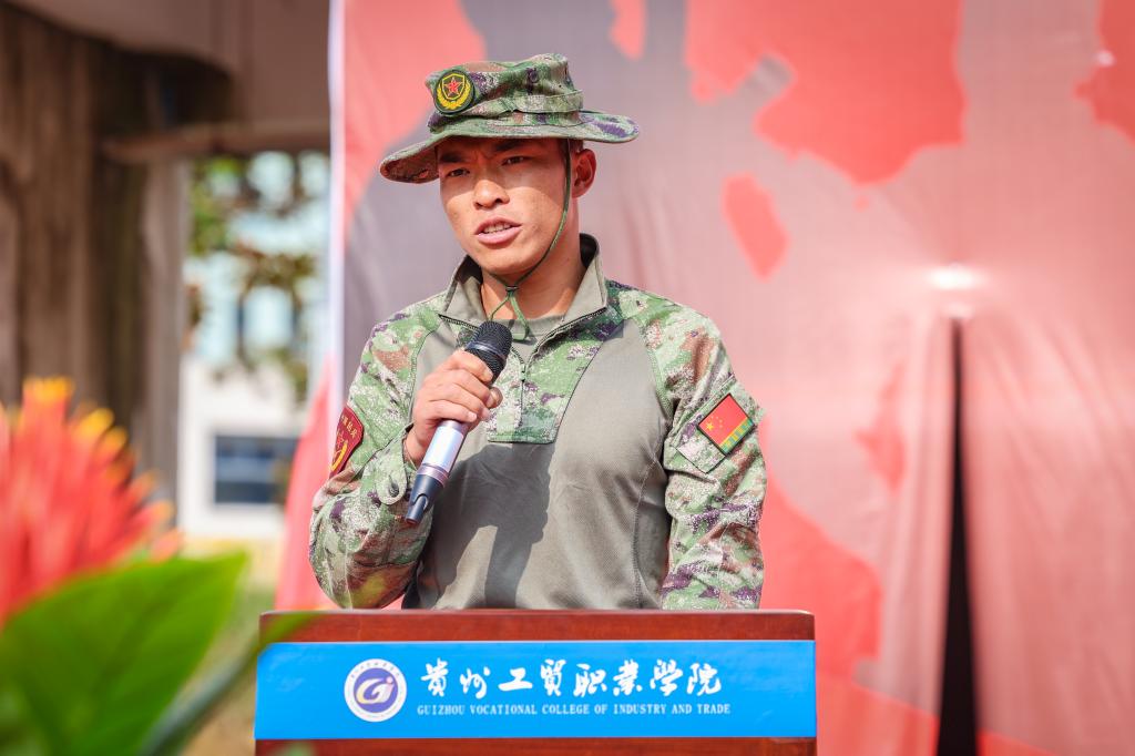 教官代表马举卫代表教官发言。他表示,军训作为学生入学的第一课,不仅是对同学们体质和意志的锻炼,更是对新同学团队精神、纪律性和集体荣誉感的培养。希望通过军训,同学们能学习军人的基本技能,增强国防意识,提高政治思想觉悟,培养吃苦耐劳的精神,增强国防观念。希望通过军训,全体同学能够珍惜这次机会,以积极的态度面对挑战,不断超越,养成坚韧不拔的意志。