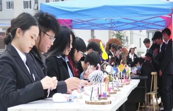活动现场,学院道路两旁布满摄影展板,从第一块展板望去,展板上的鸟儿们神态各异,参观的学生络绎不绝,贵州草海国家级自然保护区胡叶林野生动物收容救护站救助专业人员赵国平正站在展板旁边向学生讲解护鸟知识。走到展板的尽头,还有制作黑颈鹤手工的平台,松果和黏土在志愿者的手中很快就变成了一只只栩栩如生的黑颈鹤。