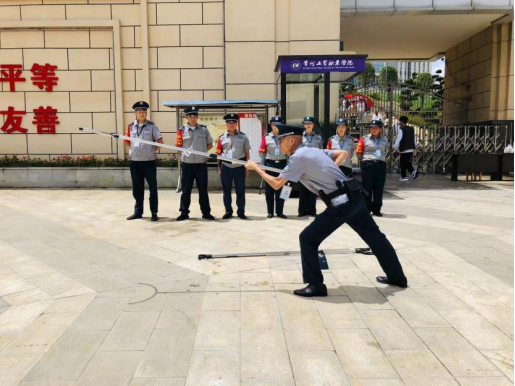 器械操作是每一位安保人员的所要掌握的基本技能,从队形队列操练、军容军姿等方面对保安进行训练,增强保安的身体素质和保安服务形象。详细示范、讲解了警棍、钢叉、盾牌等防护器械的正确使用方法。