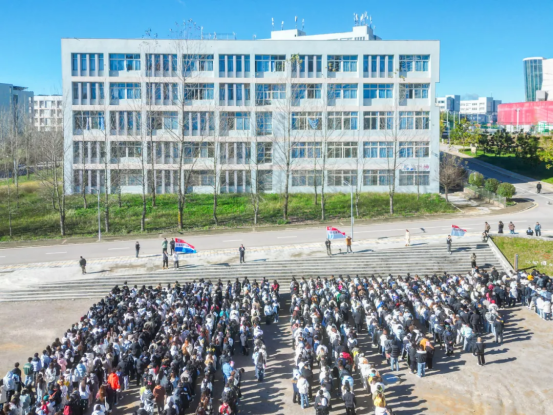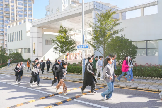 演练以应急广播和哨声为信号,各班级辅导员立即组织学生用湿毛巾捂住口鼻,弯腰低姿沿预定路线有序撤离。全体参与师生安全、快速抵达指定集合点,整个疏散过程紧张有序、规范高效,达到预期效果。