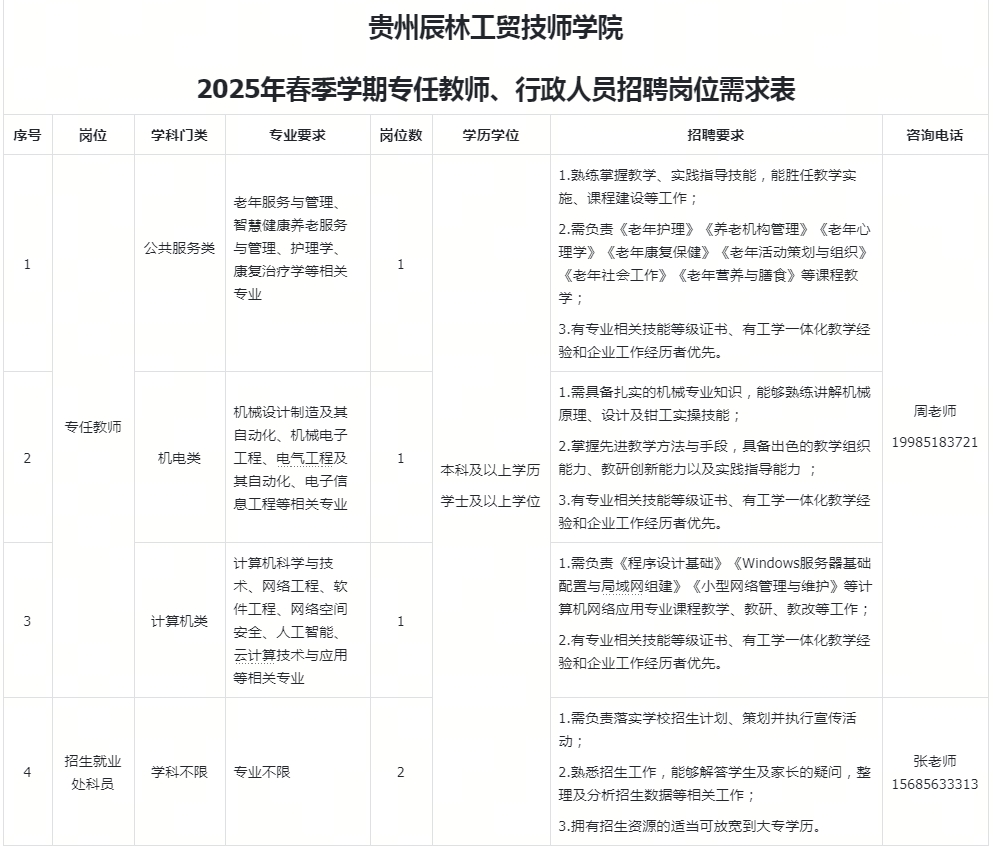 根据工作需要,我校拟面向社会公开招聘专任教师3名、行政人员2名,详见下表: