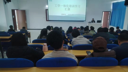 10月13日,贵州工贸技师学院教务处在明德楼阶梯教室召开本学期第二次工学一体化教学模式培训交流教研会,会议主要由新能源产业学院蓝建华老师做培训心得分享交流,技师学院全体教职员工参加此次教研会,会议由技师学院教务科科长周婧主持。