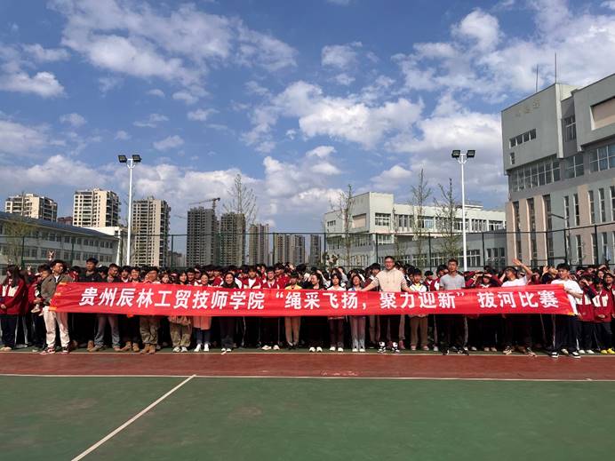 为深化校园文化建设,强健学生体魄,培育团结协作精神与集体荣誉感, 4 月 22 日,贵州辰林工贸技师学院举办 "绳采飞扬,聚力迎新" 拔河比赛。此次赛事由教务处体育教研室策划组织,各班级热情高涨、积极响应,纷纷踊跃报名参赛。赛场上,加油呐喊声此起彼伏,参赛选手们凝心聚力、奋力拼搏,展现出昂扬向上的精神风貌,生动诠释了体育竞技的魅力与团队协作的力量,为校园文化生活增添了浓墨重彩的一笔。