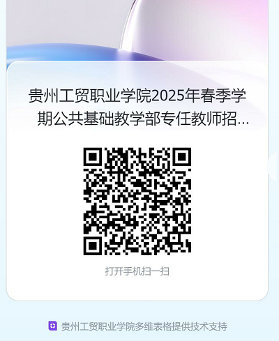 (二)报名方式:网上报名,经简历初筛、资格审查后,电话通知笔试、试讲。报考人员使用微信扫描下方飞书二维码,登记应聘者基本信息和上传个人简历(简历命名:姓名+学历+专业+毕业院校),若未按照要求填写个人基本信息和上传简历,报名信息将不予受理。