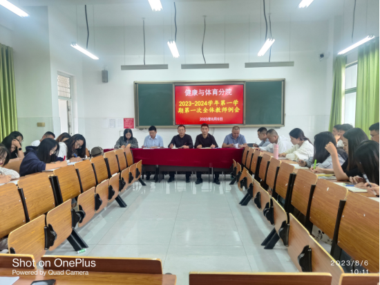 新学期、新目标、新起点、新征程。8月6日上午,我院新学期工作会议在健康与体育分院会议室举行,此次参会人员有院长罗孝龙,主任王方对,科长刘静、李安维,全体辅导员,护理教研组和体育教研组全体老师,会议由...